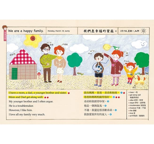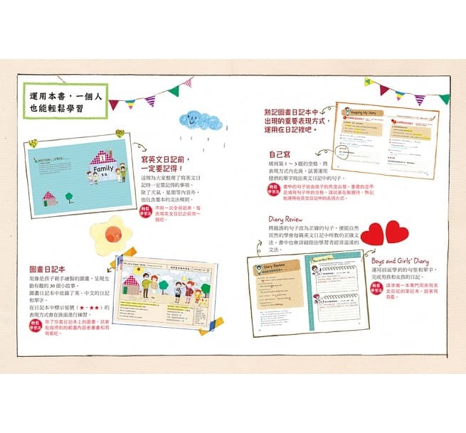 跟著本書練習,便能提升英文寫作能力。只要持之以恆,不只英文日記,就連任何英文句子都能輕鬆完成。爸爸、媽媽也可以陪著孩子一起想、一起畫、一起玩,以及一起學,讓每一篇小日記,都是記錄全家人的時光機。