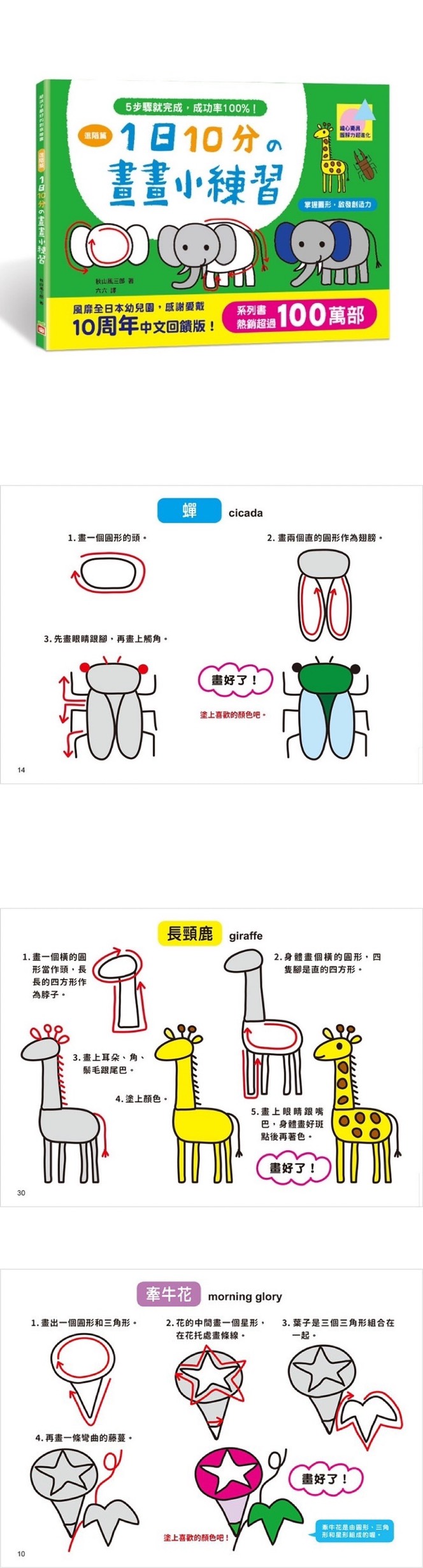 ●畫圖步驟順序拆解,3~5步就完成,變身塗畫小高手